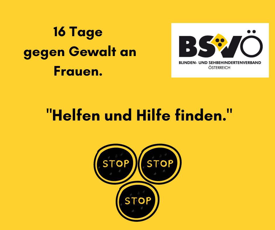 BSVÖ: 16 Tage gegen Gewalt an Frauen. Helfen und Hilfe finden.