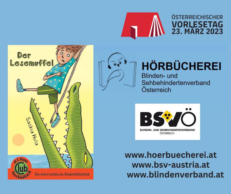Der 23.3. 2023 ist Österreichischer Vorlesetag 2023 und natürlich liest die Hörbücherei des BSVÖ für Sie! Und was würde sich hierfür besser eignen, als Saskia Hulas "Der Lesemuffel"? Eine Geschichte für Groß und Klein von einem Jungen, der eigentlich lieber auf Bäume klettert, als zu lesen...