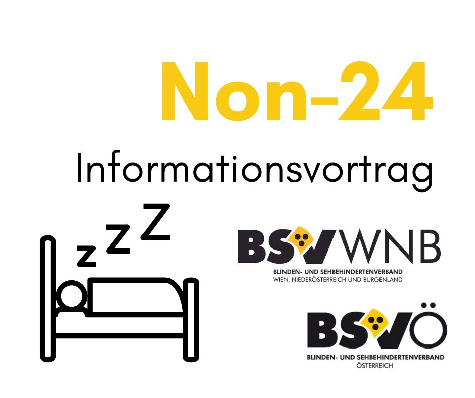 Logo BSVWNB, Logo BSVÖ "Non 24 Infovortrag" Grafik eines Bettes mit einer schlafenden Person.