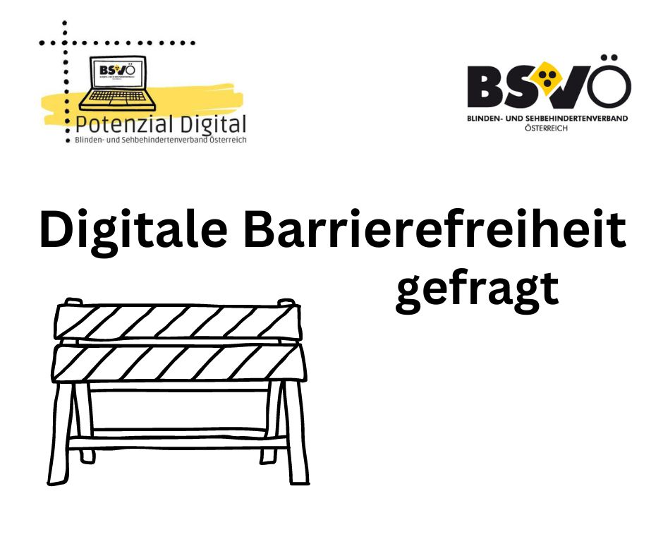Logo Potenzial Digital, Logo BSVÖ "Digitale Barrierefreiheit gefragt" Grafik einer Absperrung