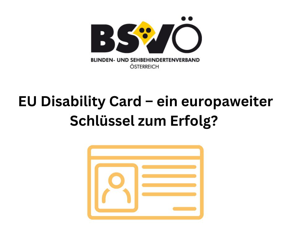 Logo BSVÖ, "EU Disability Card – ein europaweiter Schlüssel zum Erfolg", Grafik eines Personalausweises