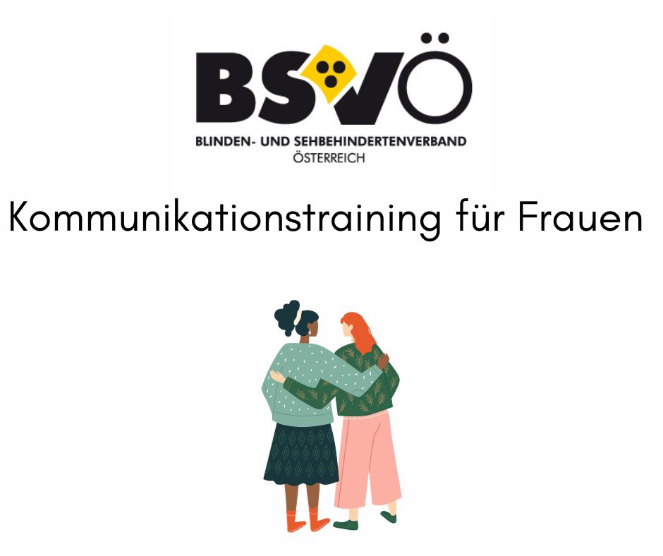 Logo des BSVÖ, "Kommunikationstraining für Frauen", Grafik zweier Frauen, die Seite an Seite stehen.