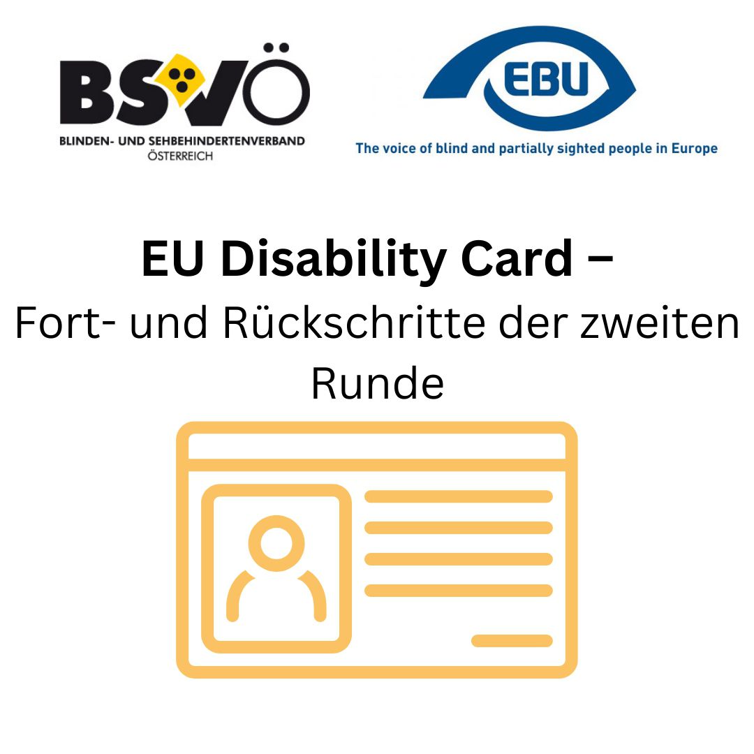 20.2.2023: BSVÖ/EBU Bericht: "Europäischer Behindertenausweis - Ihre Meinung ist gefragt! (Link: Europäischer Behindertenausweis – Ihre Meinung ist gefragt! | Aktuelles | BSVÖ - Blinden- und Sehbehindertenverband Österreich (blindenverband.at))