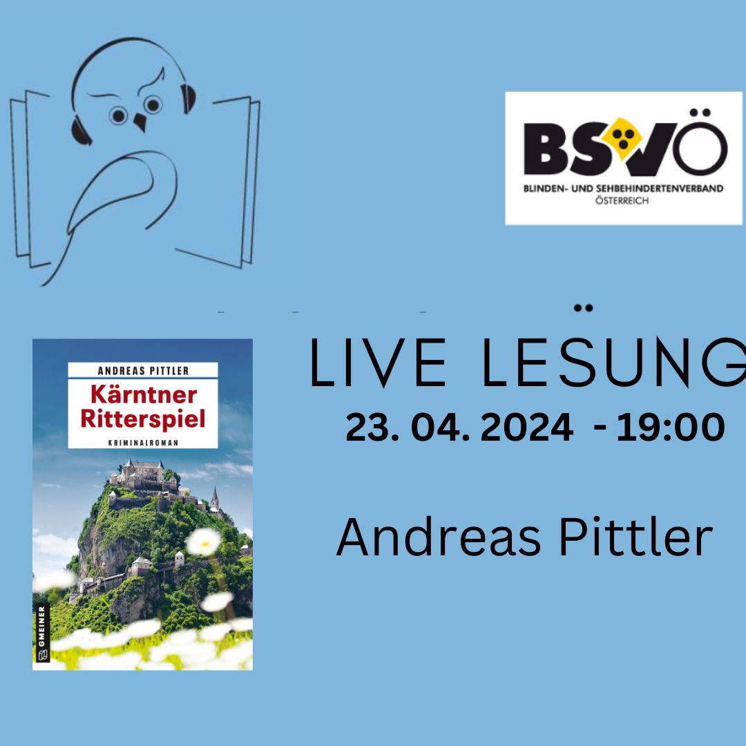 Achtung Hochspannung! Am Dienstag 23. April 2024, 19 Uhr liest Andreas Pittler in der Hörbücherei des BSVÖ aus seinem brandneuen Krimi „Kärntner Ritterspiel“ Seien auch Sie live dabei!