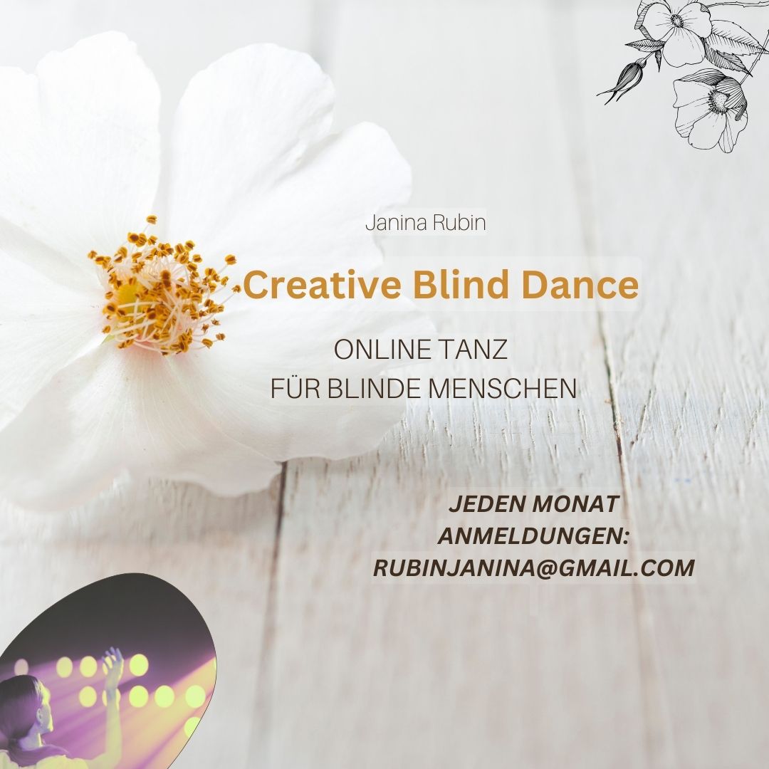 "Janina Rubin Creatuive Blind Dance. Online Tanz für blinde Menschen. Jeden Monat. Anmeldung: runbin.janina@gmail.com