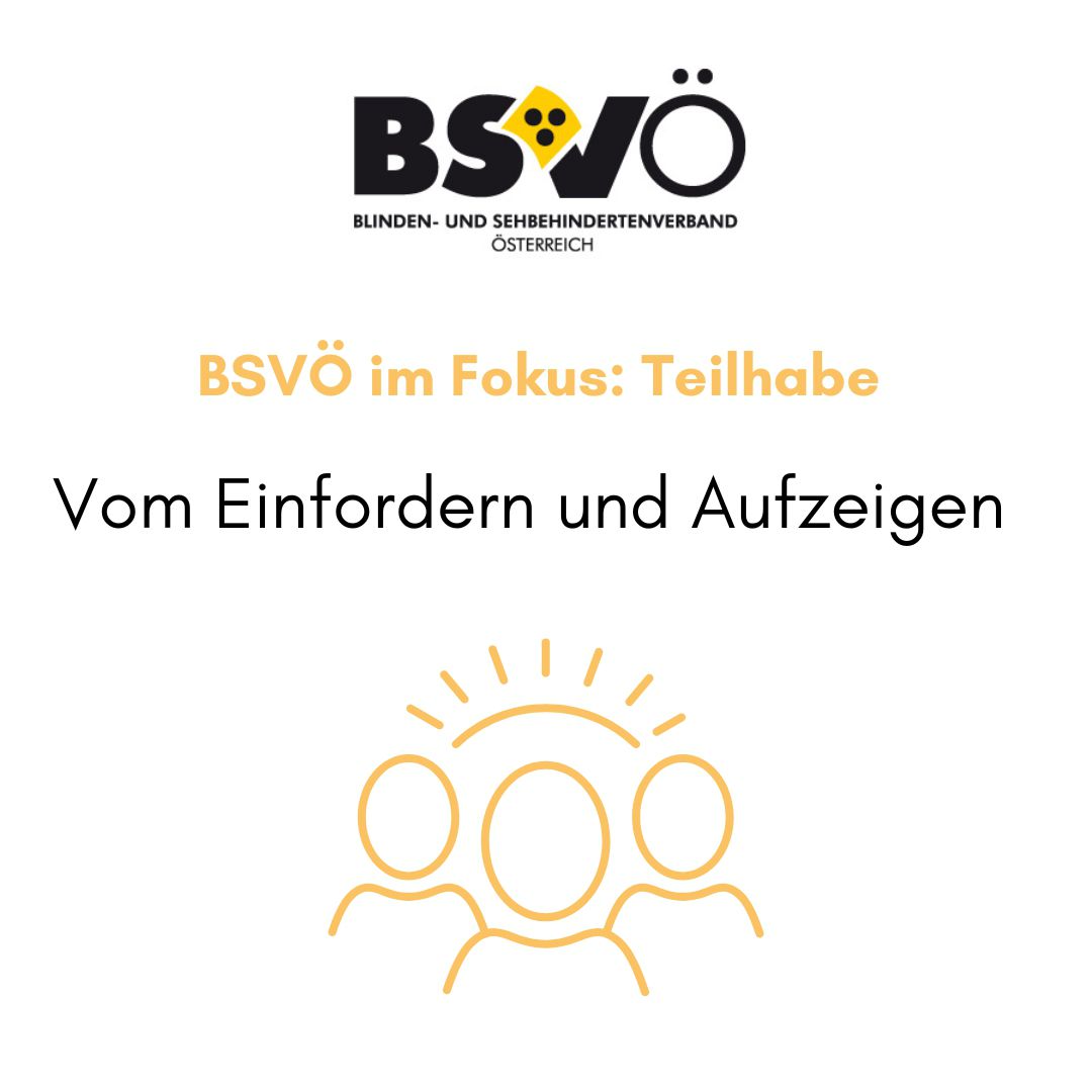 BSVÖ Fokus: Teilhabe! Vom Einfordern und Aufzeigen. Logo des BSVÖ, Grafik einer Menschengruppe