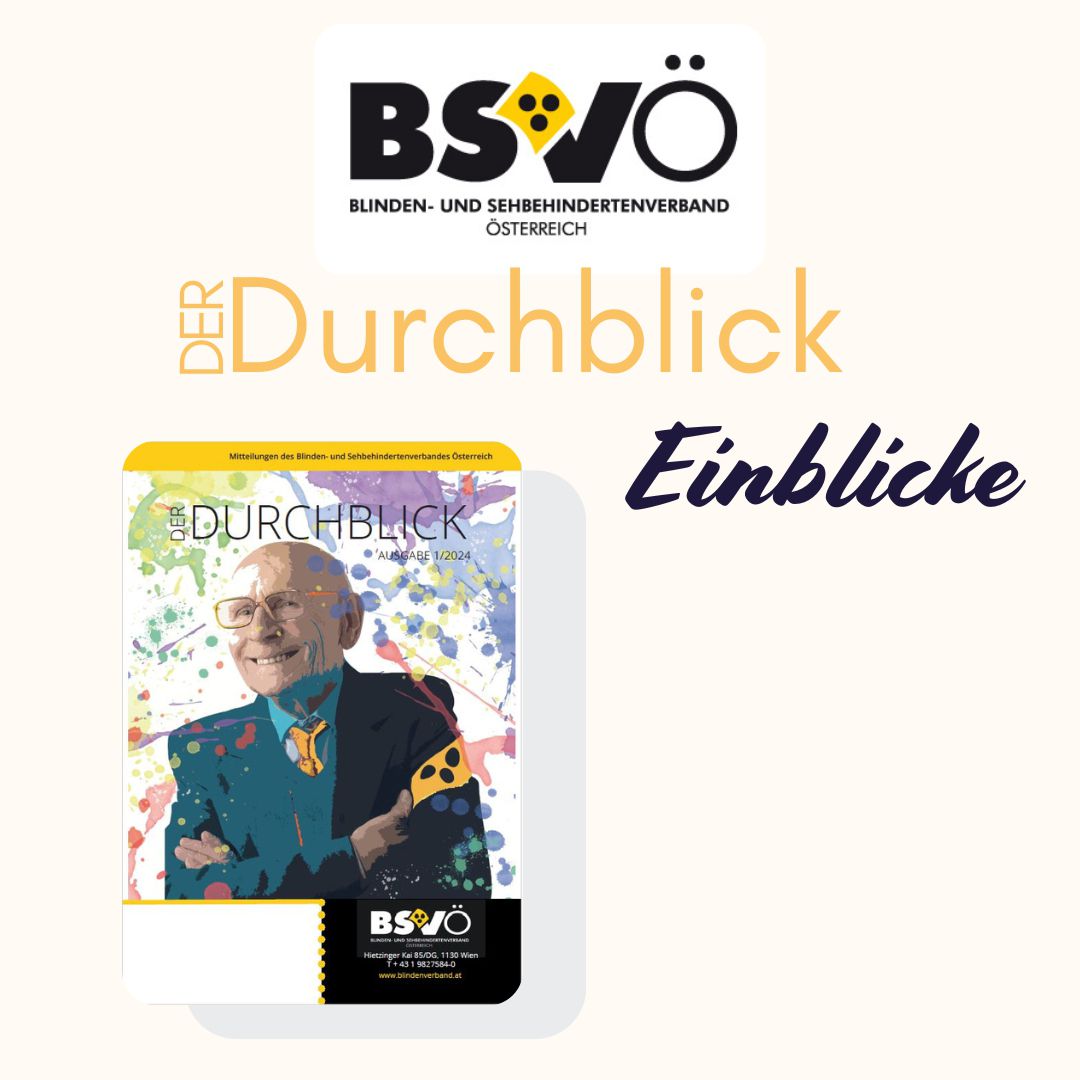 Sie möchten noch mehr schmökern? Unter diesem Link gelangen Sie zur Gesamtausgabe des Verbandmagazins "Der Durchblick" des 1. Halbjahres 2024: https://www.blindenverband.at/de/information/durchblick/archiv/2221/Der-Durchblick-2024