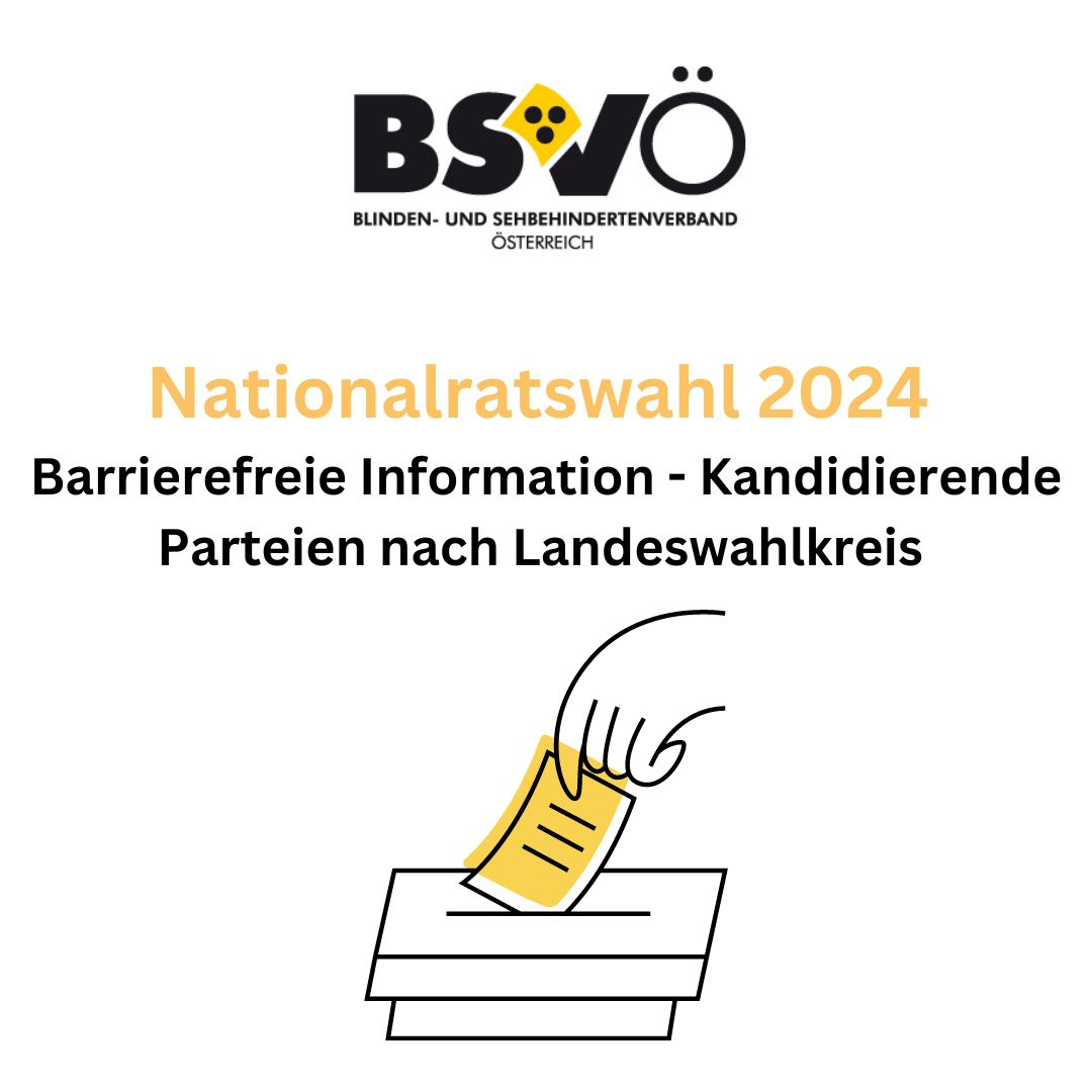 Der Blinden- und Sehbehindertenverband Österreich (BSVÖ) hat vom Bundesministerium für Inneres (BMI) den Auftrag erhalten, blinden und sehbehinderten Menschen, die in Österreich wahlberechtigt sind, mit der barrierefreien Aufbereitung von Materialen und Informationen zur Nationalratswahl 2024 eine barrierefreie Wahlbeteiligung zu erleichtern.