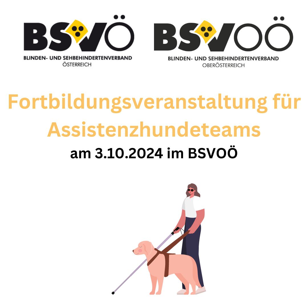 Die Veranstaltung findet am 03.10.2024 ab 10:00 Uhr im Haus des BSVOÖ statt und ist kostenlos. Durch die Teilnahme an der Fortbildung werden 6 Stunden der Fortbildungspflicht für Assistenzhundeteams angerechnet.