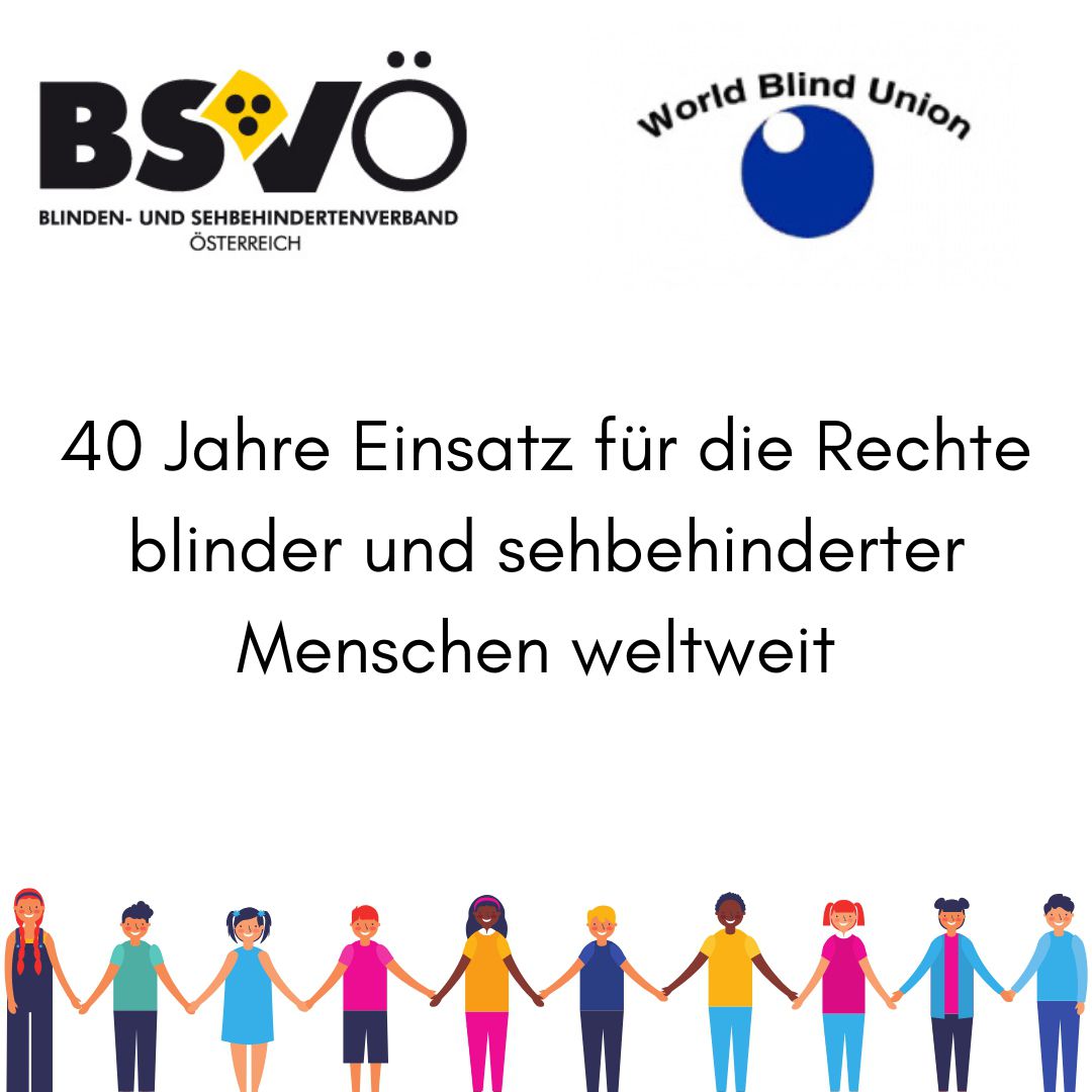 Weltblindenunion feiert 40 Jahre Einsatz für die Rechte blinder und sehbehinderter Menschen weltweit . Logo BSVÖ, Logo WBU