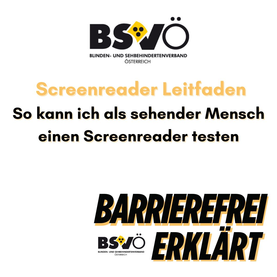BSVÖ Logo "Barrierefrei erklärt! So kann ich als sehender Mensch einen Screenreader ausprobieren"
