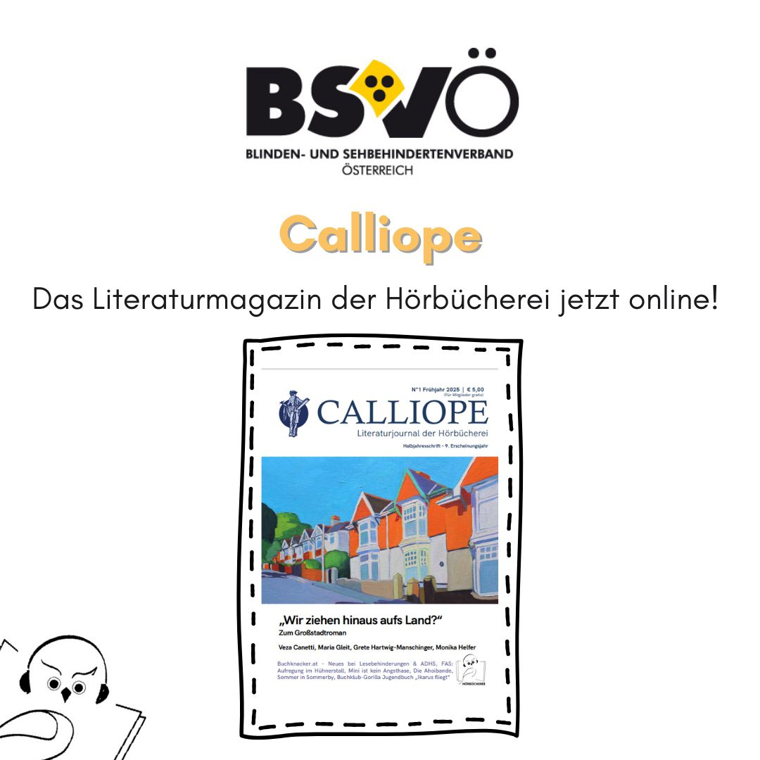 Die „Calliope“ steht nun zum Download als barrierefreies PDF unter folgendem Link zur Verfügung: https://www.hoerbuecherei.at/sites/default/files/assets/downloads/calliope2025I01_web.pdf