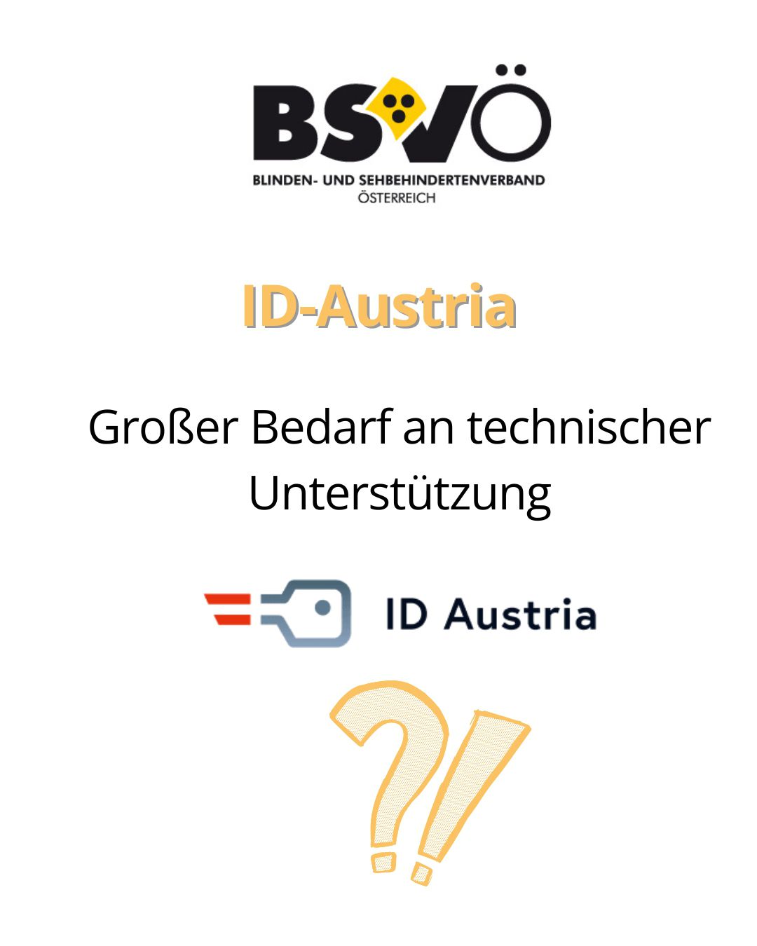 Id-Austria. Großer Bedarf an technischer Unterstützung. Logo BSVÖ, Logo ID-Austria.