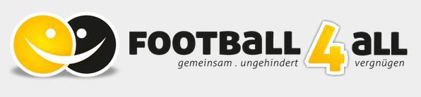 Logo: Zwei Bälle bilden ein lachendes Gesicht. Football4all. Gemeinsam ungehindert vergnügen.