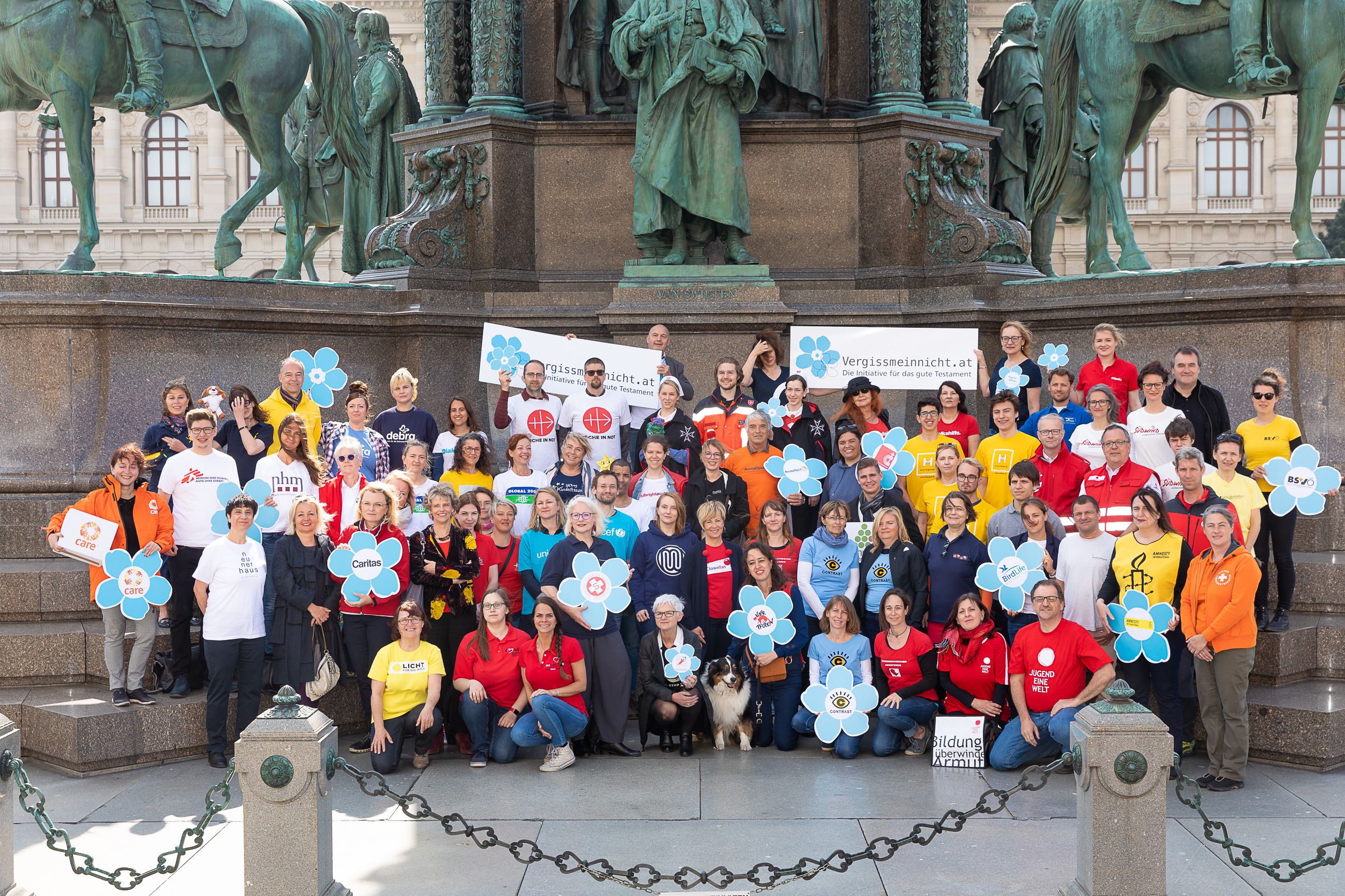 Gruppenfoto der Mitgliedsorganisationen am Maria-Theresia-Platz am 24.4.2019.
