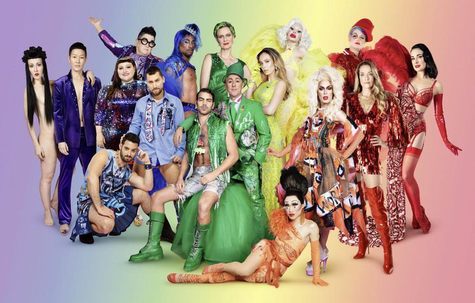 Die Botschafter des 26. Life Balls, in ihren bunten Outfits die Farben des Regenbogens bildend. Unter anderem dabei sind: Cynthia Nixon, Alan Cumming, Beth Ditto, Amanda Lepore, Carmen Carrera, Kelly Osbourne, Billy Porter, Dita von Teese.