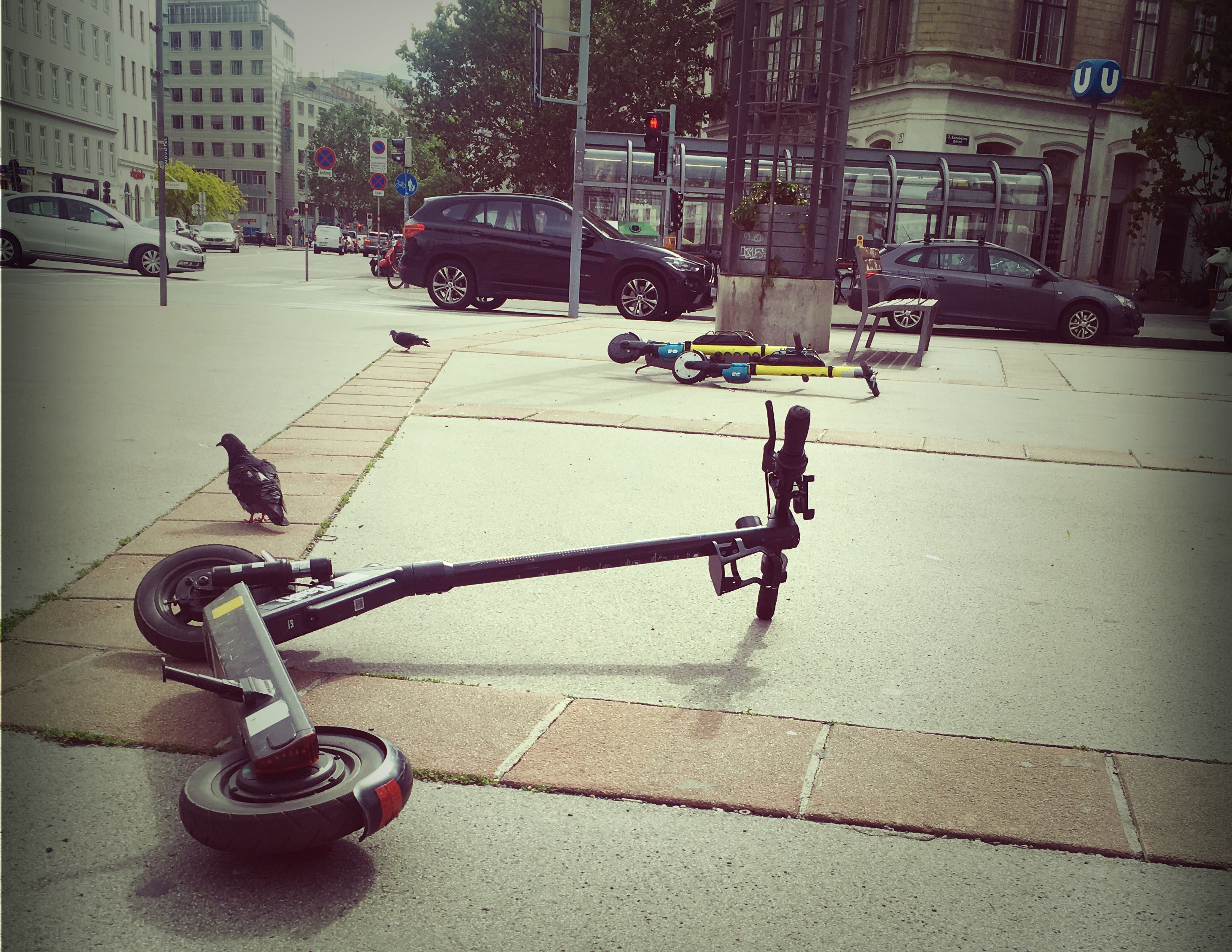 Seit 1. Juni 2019 gibt es genauere Bestimmungen zur Grauzone E-Roller. Unbedachtes Abstellen und rücksichtsloses Fahren der Geräte ist dennoch weiterhin ein Problem.