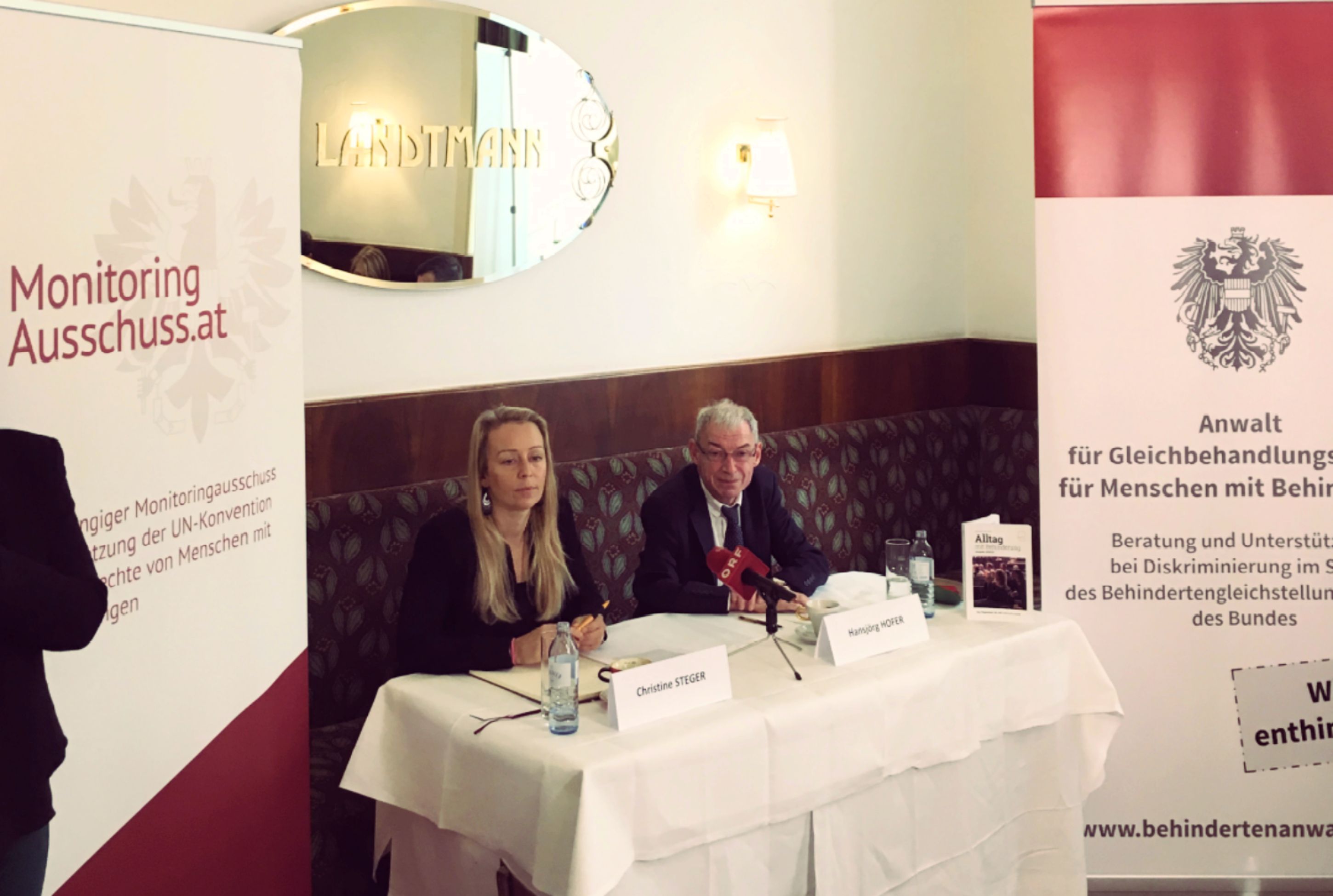 Behindertenanwalt Dr. Hansjörg Hofer und Vorsitzende des Monitoring Ausschusses Christine Steger traten am 10. Oktober 2019 vor die Presse um behindertenpolitische Forderungen zu präsentieren, deren Umsetzung für die künftige Regierung relevant sein wird.