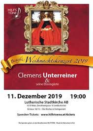 Staatsopernbariton und Botschafter des BSVÖ, CLEMENS UNTERREINER, lädt zu seinem traditionellen Benefiz Weihnachtskonzert für seine HILFSTÖNE. Die Lutherische Stadtkirche hüllt sich jedes Jahr in weihnachtliche, friedvolle Stimmung und bietet eine wunderbare Kulisse und besinnliche Zeit mit Stars und Publikumslieblingen der Oper, Theater und Konzertpodien. Der Reinerlös geht wie jedes Jahr an die HILFSTÖNE - Musik für Menschen in Not .