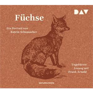 Rot-braunes Cover, Abbildung eines sitzendes Fuchses. Füchse. Ein Portrait von Katrin Schumacher. Ungekürzte Lesung mit Frank Arnold. Naturkunden DAV