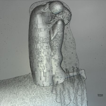 Die Oberfläche Gustav Klimts "Der Kuss" als 3D Rendering.
